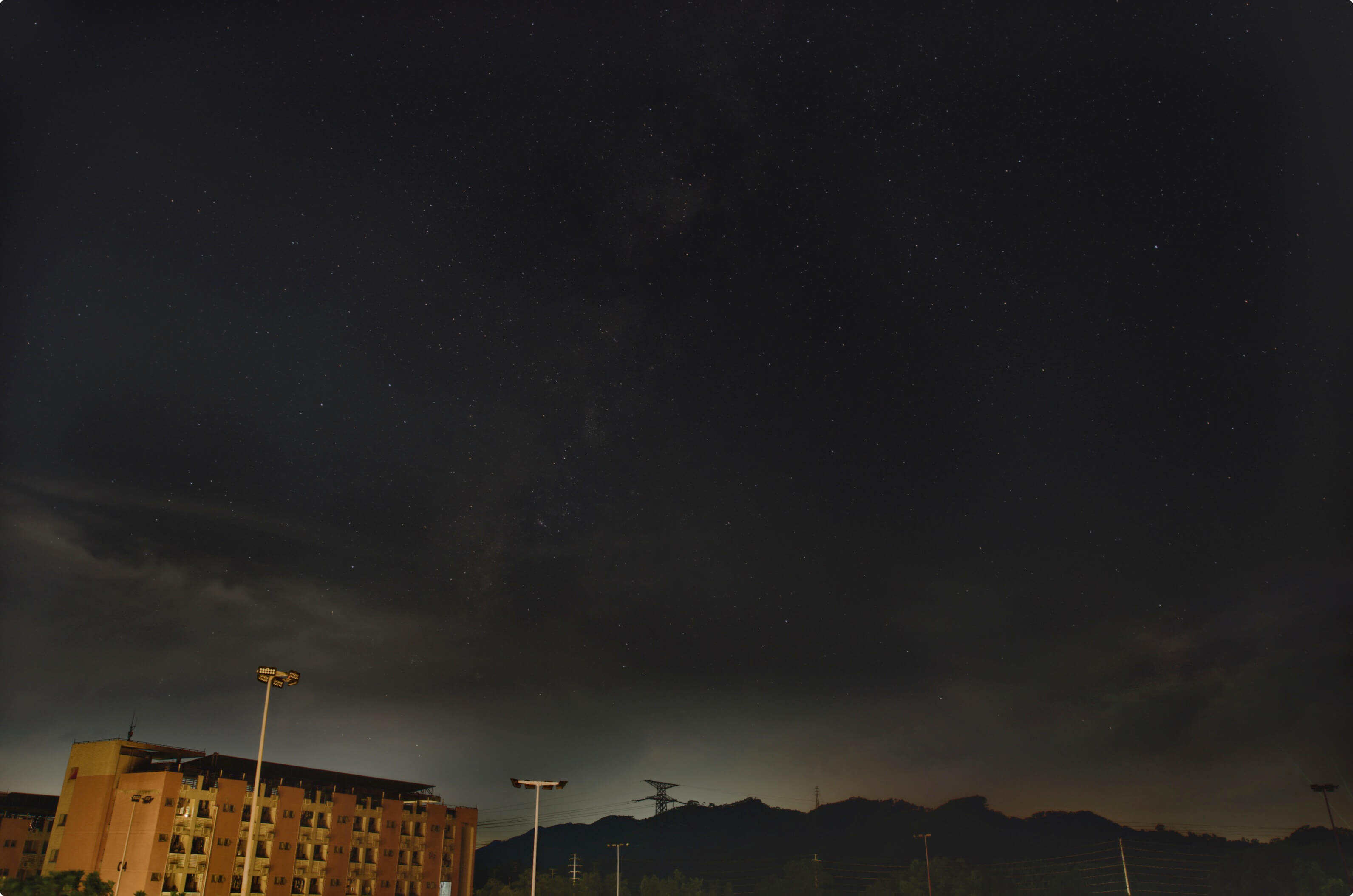 星空🌃|第一次的尝试 2023-6-30 2:34 | 342 | 0 | 生活 53 字 | 几秒读完 本文最后更新于 907 天前,其中的信息可能已经有所发展或是发生改变。 第一次尝试拍摄星空,等了我好久 下面是图片原来的模样,能在空中看到一点点星云的痕迹,通过后期强行提取出来